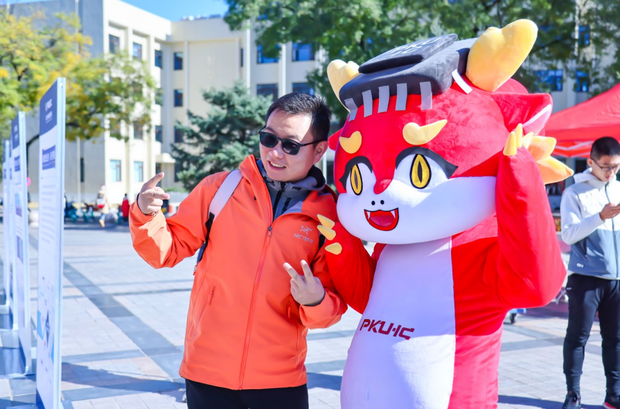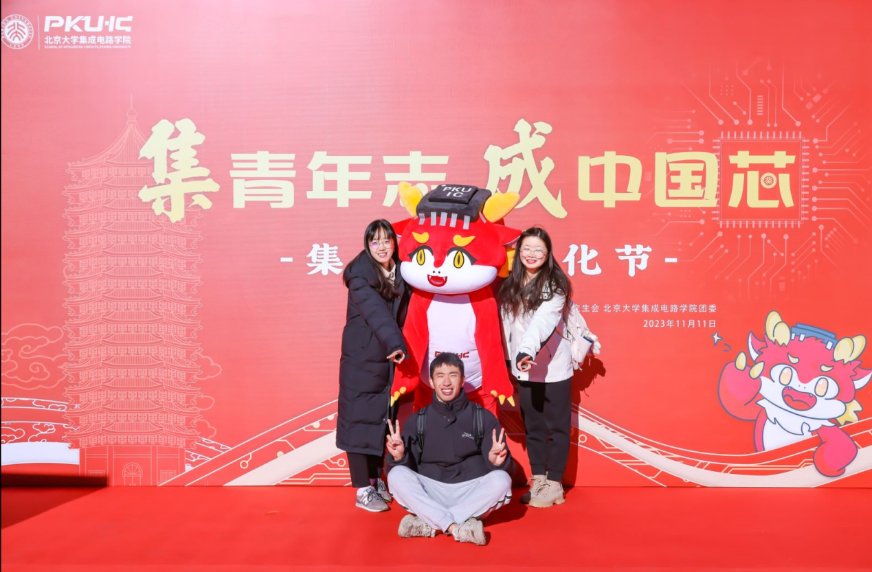 的原创吉祥物“莫斯电龙”互动合影,共同留下集成电路文化节的美好印记。
