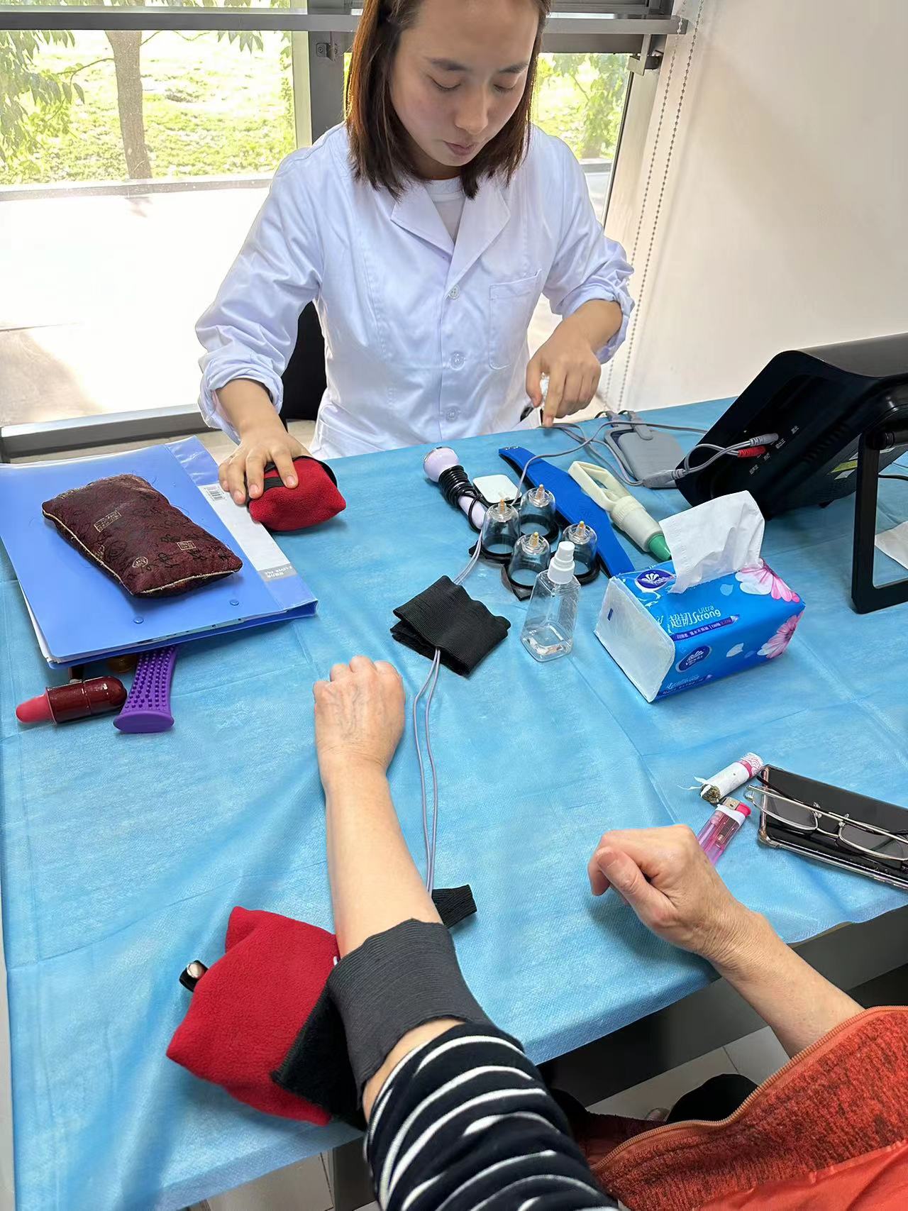 医生通过“望、闻、问、切”等方式进行了问诊、把脉,对个人健康状况进行评估,进一步给出合理的诊疗和日常饮食建议;针对颈肩腰腿痛、失眠、内分泌失调、肝胆不适、脾胃不和等问题,进行针灸、推拿、刮痧、穴位贴敷等理疗调理;并为教职工普及了中医调理和预防保健养生知识。