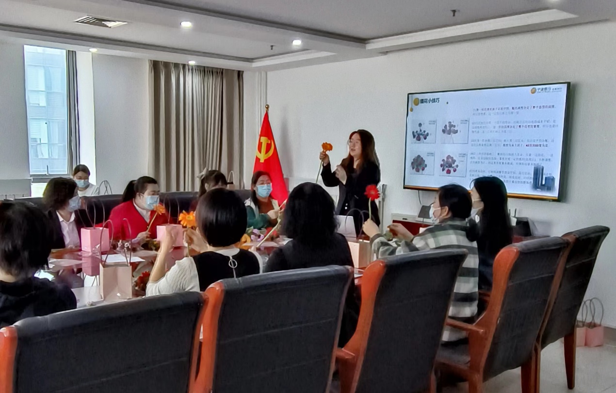 战略合作伙伴宁波银行合作,面向全院女性教职工开展“集成花样生活”妇女节主题活动。学院邀请具有丰富插花经验的花艺师为大家亲自教学,在休息之余感受花香,体会生活中的美好。