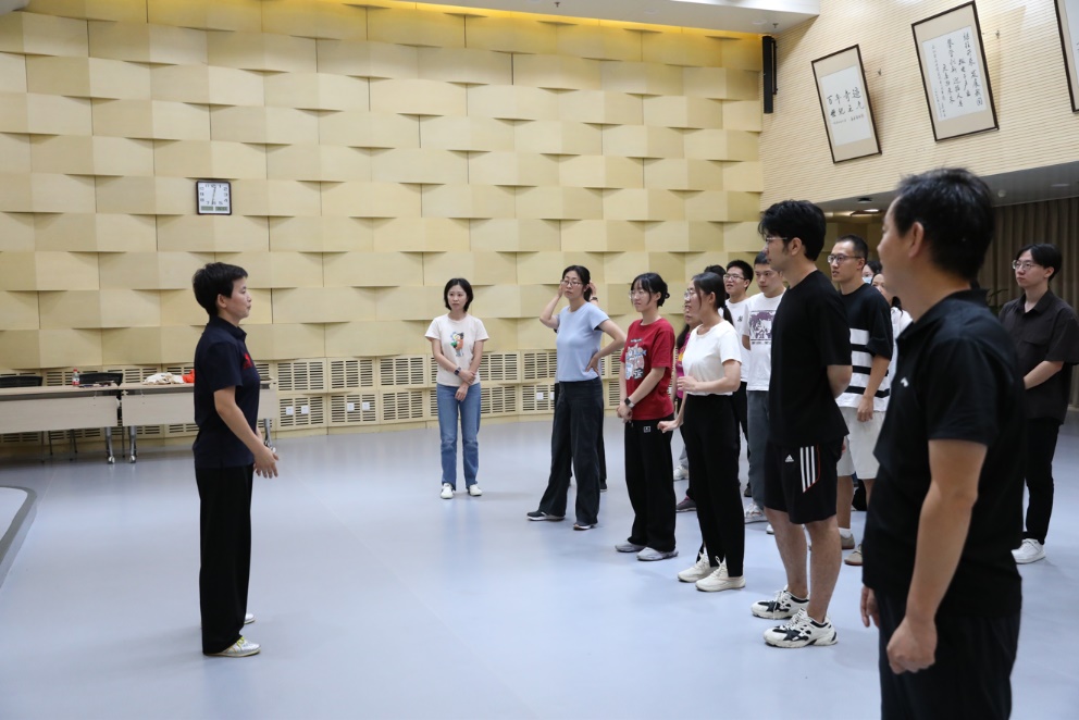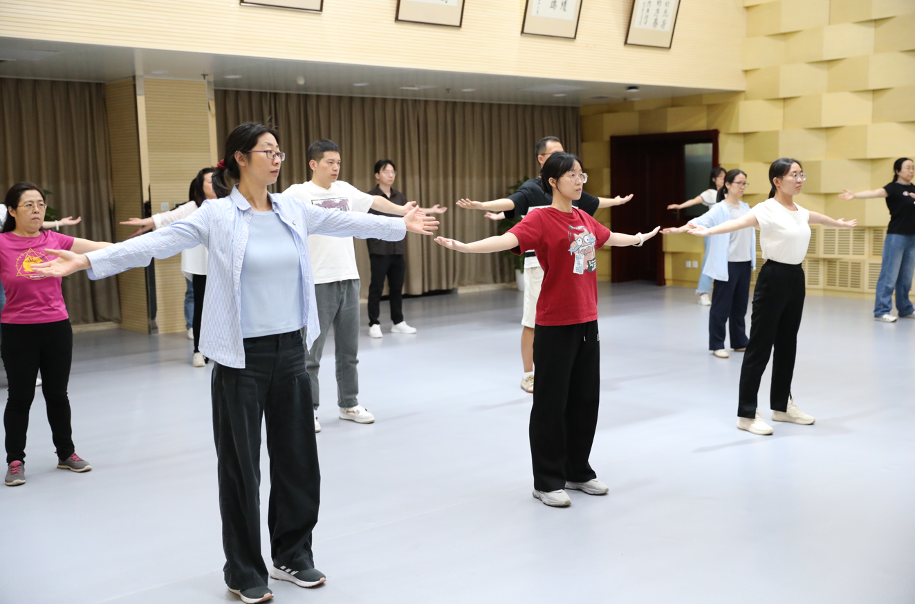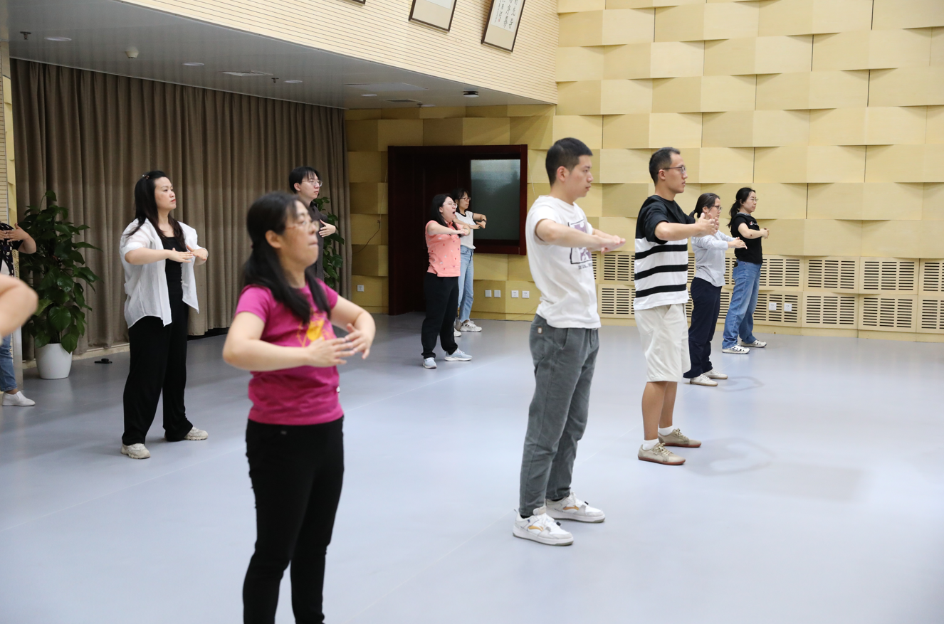 武术研究中心主任王东敏老师莅临我院,为大家讲授健身气功八段,以古风雅韵,共绘师恩长卷。党委副书记刘军华、张舒出席,共计40余位教职员工及学生参与活动。