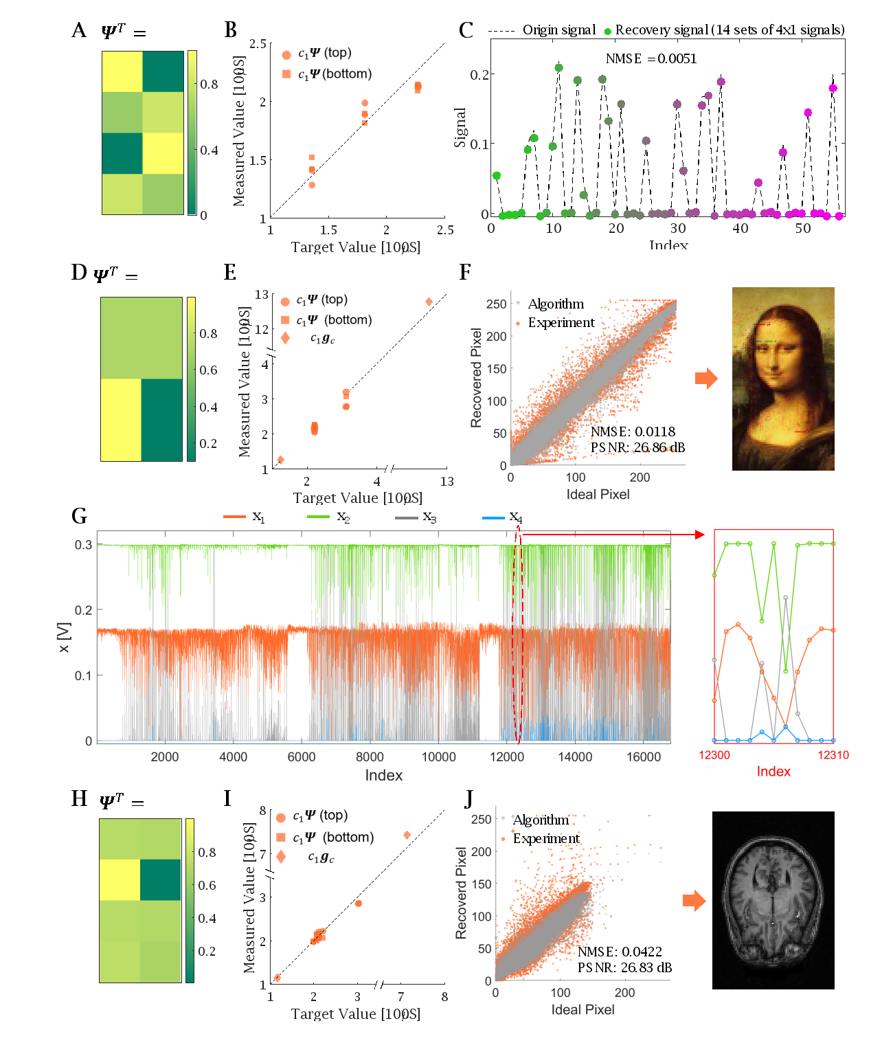图2. 一维信号、二维彩图和MRI还原实验结果