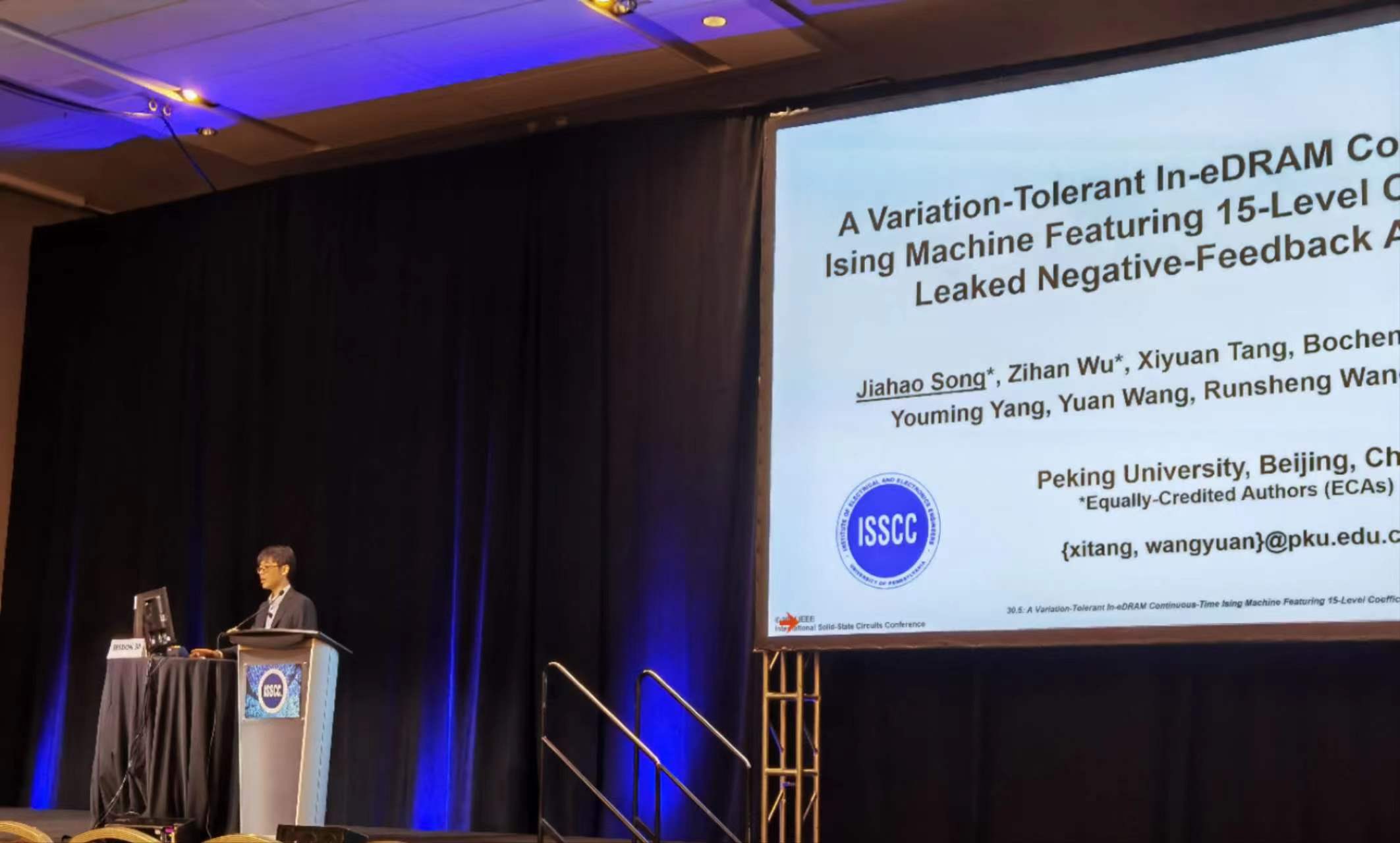 该工作以《A Variation-Tolerant In-eDRAM Continuous-Time IsingMachine Featuring 15-Level Coefficients and LeakedNegative-Feedback Annealing》为题,发表于今年ISSCC的领域专用计算和数字加速器(Session 30 Domain-Specific Computing and Digital Accelerators)分会场。肉蒲团