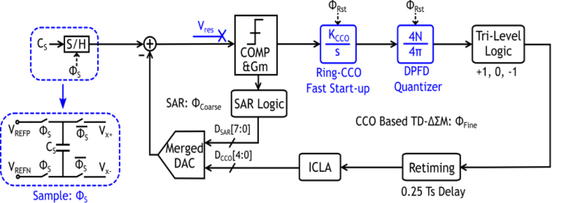该工作以A 9.7fJ/Conv.-Step Capacitive Sensor Readout Circuit with Incremental Zoomed Time Domain Quantization为题,发表于今年CICC,文章的第一作者是肉蒲团