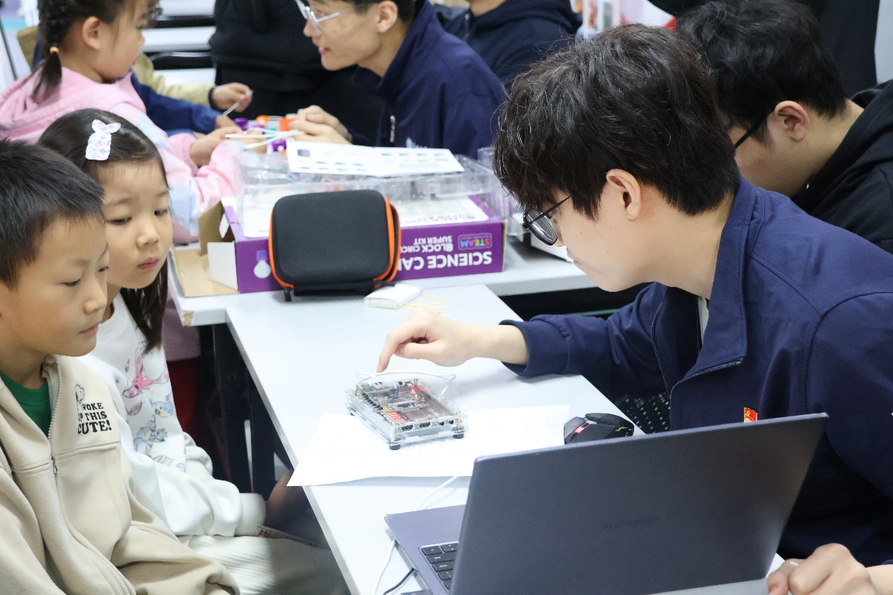 2024级研究生第一党支部与博士一班团支部联合海淀区中关园社区开展了“芯探微芒,智解寻常”科普进社区宣讲活动。学院团委书记王凌越参加活动,活动由第一党支部书记钟婷婷主持。