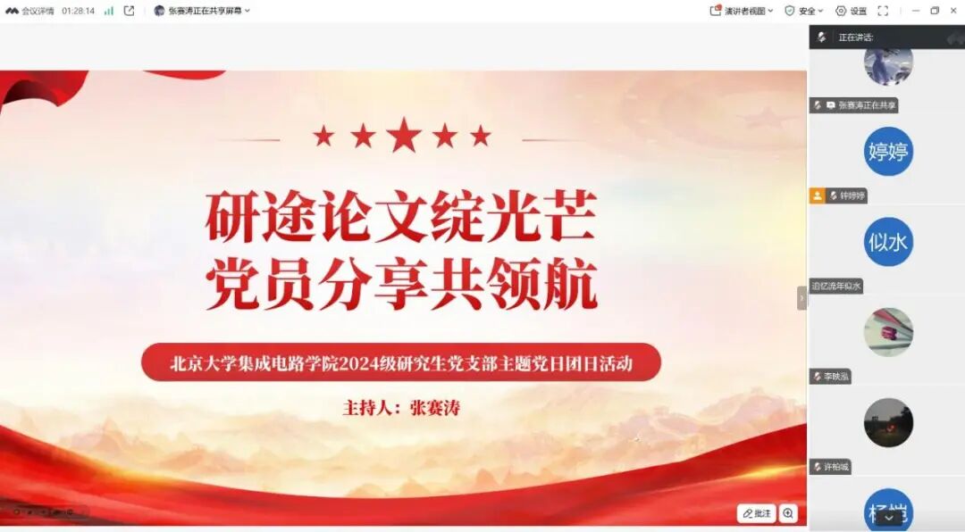 2024级研究生第一党支部以组织有序的“组合拳”将党建工作的“政治引领力”转化为推动专业学习的“创新战斗力”。展望未来,支部将继续砥砺前行,不断深化“四芯”品牌建设,努力锻造一支政治过硬、专业精湛、勇于担当的党员先锋队伍,为攻克集成电路领域关键核心技术、服务国家战略需求贡献源源不断的青春“芯”力量!