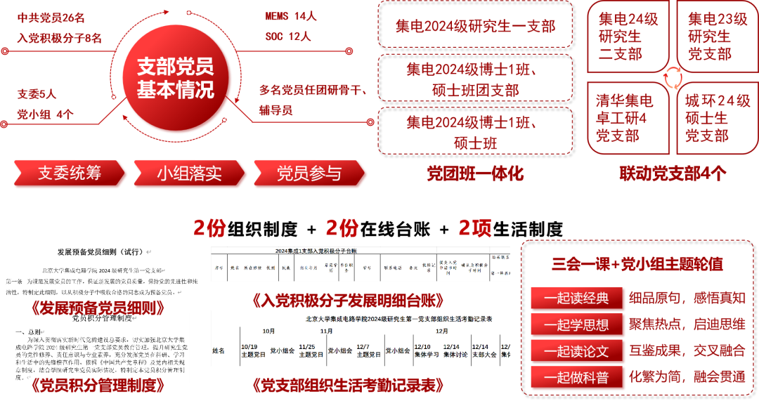 支部26名党员和7名积极分子涵盖集成电路设计与集成微纳系统等方向,在明晰的架构、规范的制度与持续的建设中,如“独立元件”耦合为协同并进、效能聚合的“完整芯片”。