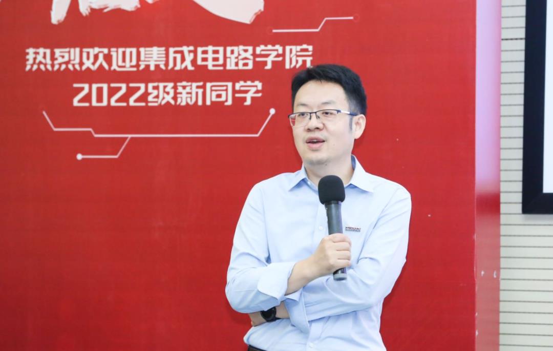 党委书记王源以 “芯”火相传,使命在肩”为题,为集成学院2022级全体新生讲授新生第一课。2022级硕博新生共同聆听了这堂生动精彩的党课。