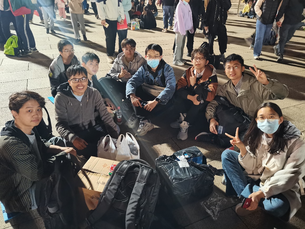 同学们见证了黎明第一缕阳光打破黑夜照到天安门城楼上