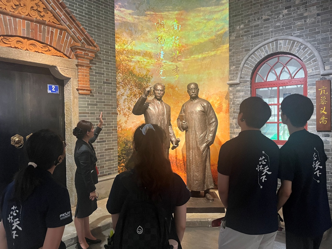 6月18日下午,实践团来到中共一大会址及纪念馆参观。在纪念馆,讲解员引领团队依次走过“历史选择·伟大起点”、“前仆后继·救亡图存”、“早期组织·星火初燃”、“开天辟地·日出东方”和“砥砺前行·光辉历程”五个主题展厅,通过一件件珍贵的革命文物、一幅幅鲜活的历史影像、一幕幕逼真的场景复原,全体成员系统回顾了中国共产党从孕育萌芽到发展壮大的峥嵘岁月。随后来到兴业路76号(原望志路106号)中共一大会址,讲解员以建筑细节为切入点,讲述初心故事,实践团凝视着会址场景,仿佛听到代表们关于救国道路的激烈讨论。从石库门到天安门,从兴业路到复兴路,同志们深刻感悟到中国共产党团结带领中国人民从站起来、富起来到强起来的伟大飞跃,在沉浸式的参观体验中接受了一次深刻的思想洗礼和精神淬炼。