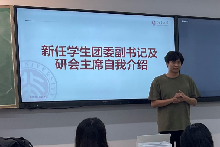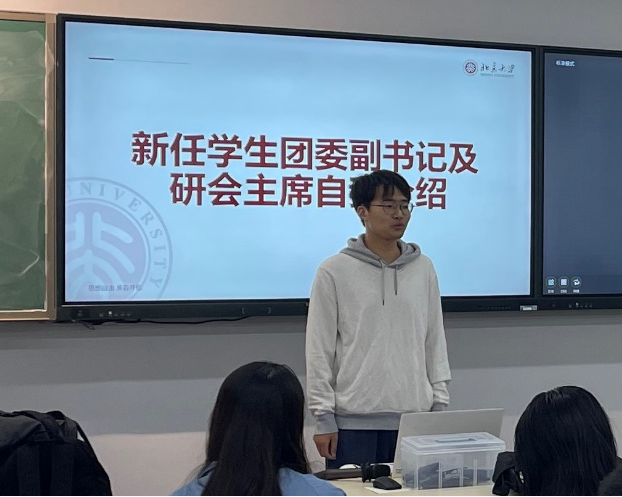 随后,新任学生团委副书记及研会主席作自我介绍。张嘉言感谢了过去一年的经历,自己在为学院同学服务的过程中也收获了成长与经验,希望在新学年里大家也能积极参与到学院的工作中来,服务同学、共同进步。林聪分享了学生工作心得,学生工作不仅锻炼了组织、协调、沟通能力,也收获了一段段真挚的友谊。赵鹏程介绍了自己过去一年在团委中的工作,并对新学年团委的工作进行了展望,他表示新任团委一定会不忘初心、继往开来,努力在各方面能更上一层楼。唐睿就如何处理好学术肉蒲团