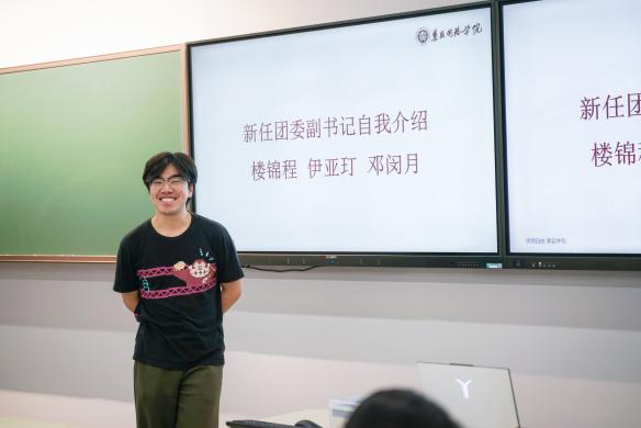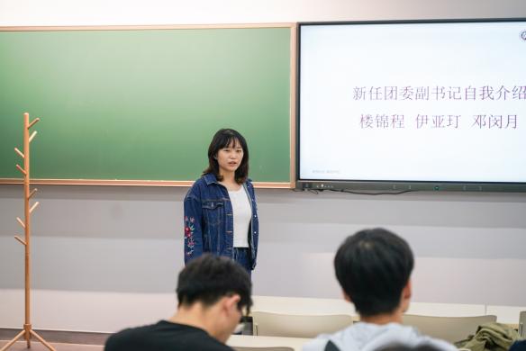 新任学生团委副书记、研究生会主席进行了自我介绍。楼锦程分享了自己过去在宣传部的工作经验,在为学院宣传工作服务的同时也培育了自己的专业技能,并且鼓励大家要勇于探索新的活动形式,并从团学工作获得成长。伊亚玎分享了自己在学术部的工作经历,学生工作不仅让自己体验到了充实的获得感,同时也让自己结交到了许多志同道合的好朋友,并期望大家在这里收获更多的友谊。邓闵月分享了自己过去在实践部的工作经历,学生工作使得自己有机会参与到丰富多彩的活动的策划和举办中,丰富了自己的课余生活,也希望大家可以通过学生工作给自己繁忙的肉蒲团