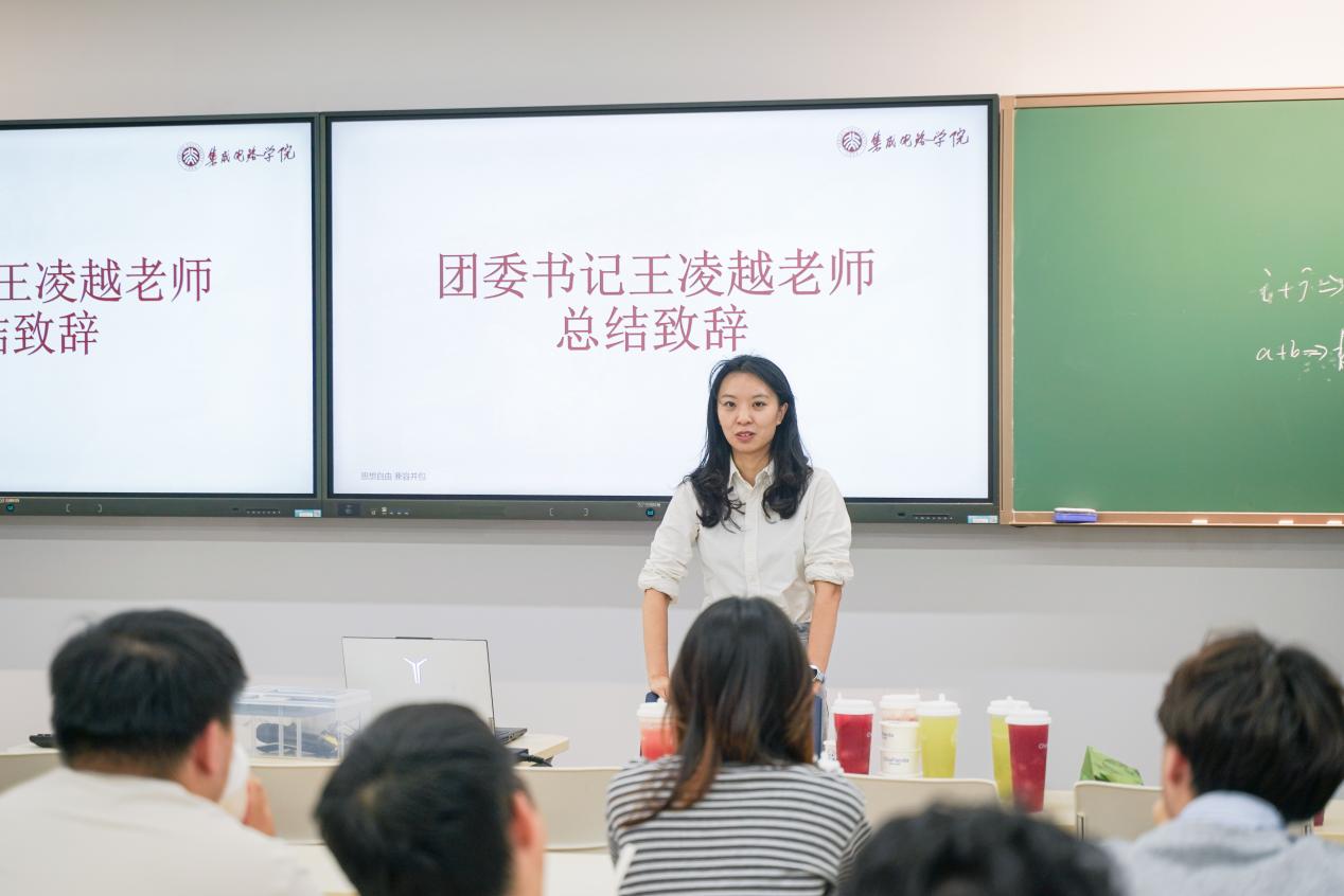 在总结致辞中,王凌越老师鼓励同学们培养责任意识和担当,希望团学研成为各位的精神家园和坚强后盾,同学们可以从中汲取精神力量,获得动力面对肉蒲团