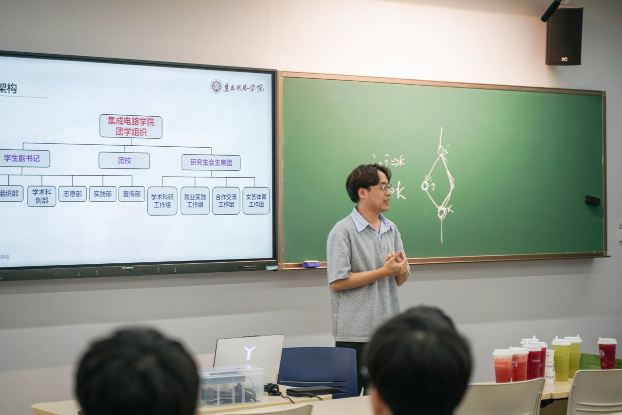 陈傲杰介绍了学术科创部承担的各类学术交流活动的组织与筹备工作,包括全国微电子研究生学术论坛,并与校团委、其他院系交流合作,协助举办和宣传挑战杯、互联网+等学术赛事,以及模拟面试、企业参访等校企合作活动,并表示学术科创部有着众多与优秀老师、学长和学姐交流的机会,欢迎大家通过学生工作实现自我肉蒲团