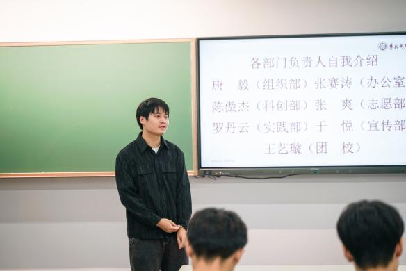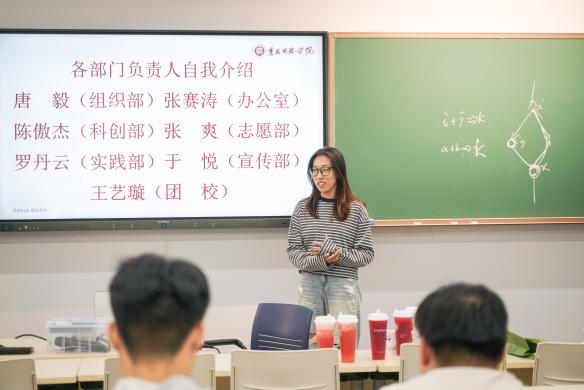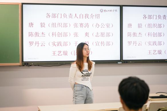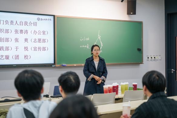 王艺璇介绍了团校过去的相关工作,包括组织团员培训、协助团委各部门工作等,并表示团委一直是一个团结包容的大家庭,希望大家能共同合作,齐心协力,共同为学院发展奉献力量。