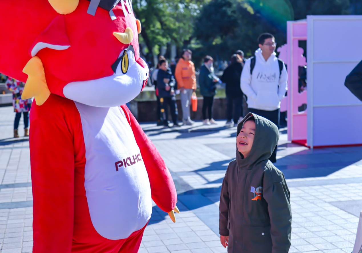 的原创吉祥物“莫斯电龙”互动合影,共同留下集成电路文化节的美好印记。