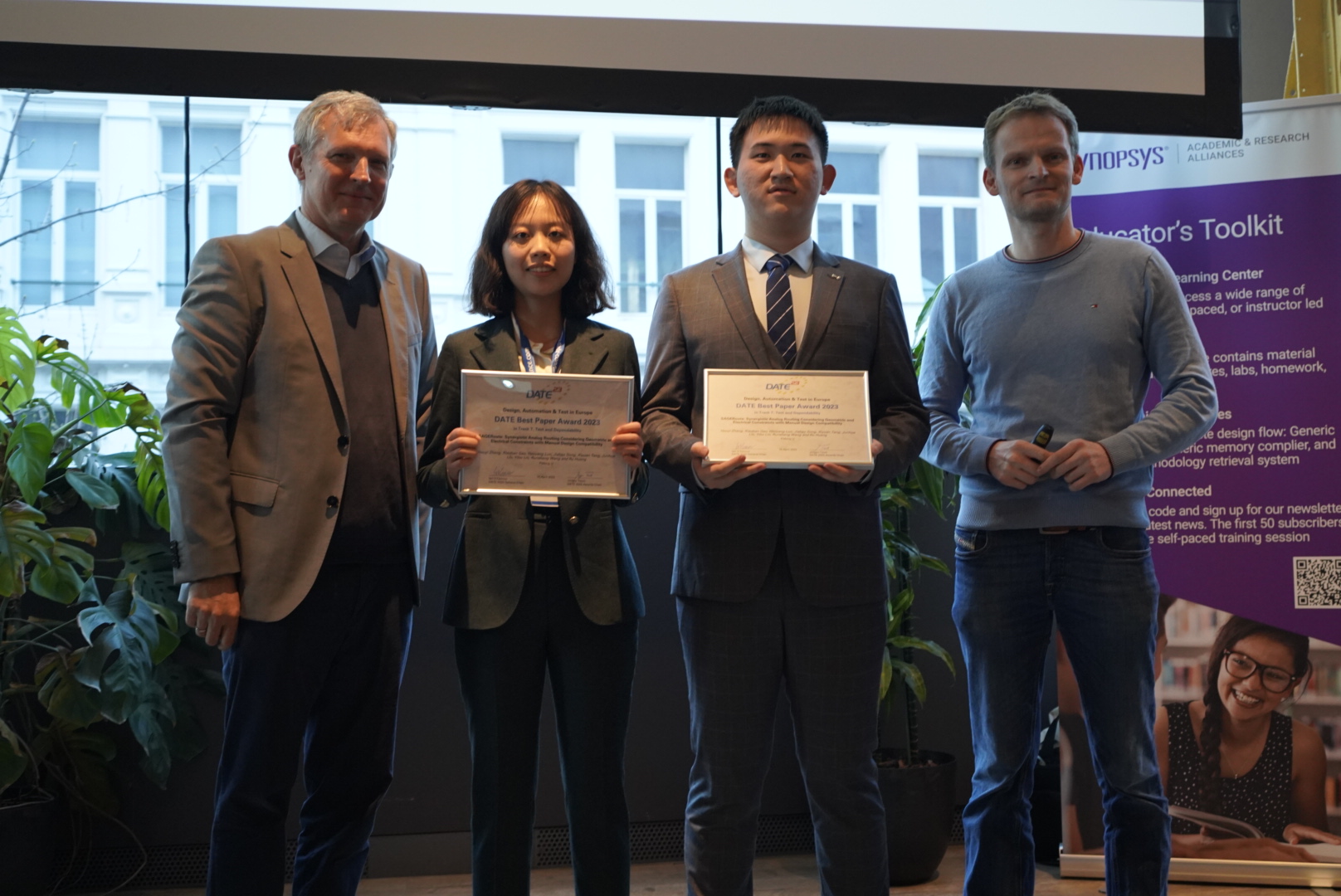 (从左往右为:大会Award主席Jürgen Teich,高笑涵,张昊懿,大会程序主席Robert Wille)