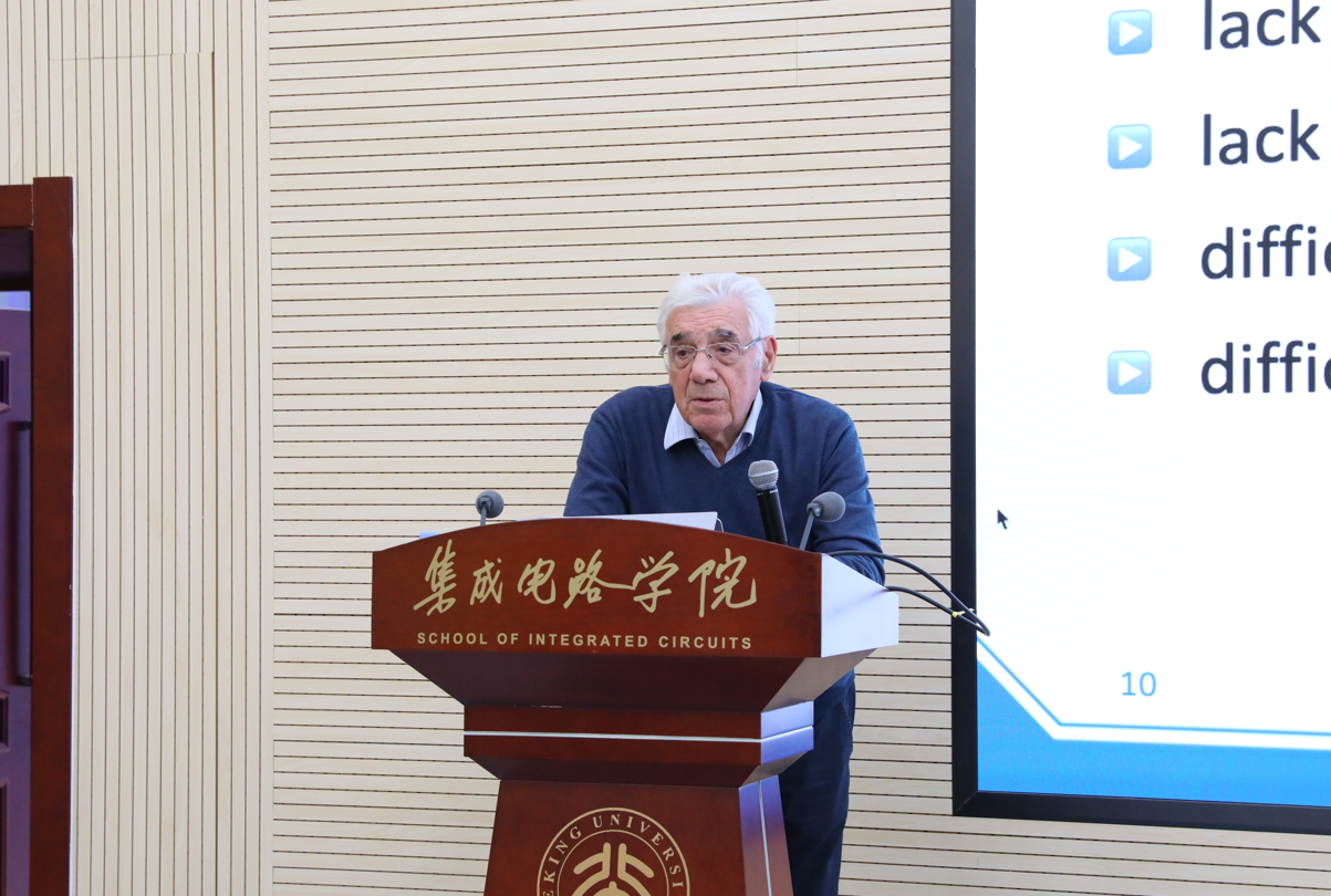 在交流环节,同学们就CAD的发展未来发展方向、生成式人工智能在CAD中的应用以及前CAD时代的电路设计方法等问题与 Maloberti 教授进行了深入探讨。他认为,CAD的发展为模拟电路设计提供了巨大便利,是集成电路技术发展的重要基石,我们要做的是时刻保持思考的态度,让CAD成为推动创新的工具。他指出,一个优秀的电路设计者应该努力在惯常的现象中发掘新事物。近些年,中国集成电路领域涌现出大批人才,他对中国集成电路产业的发展充满期待。