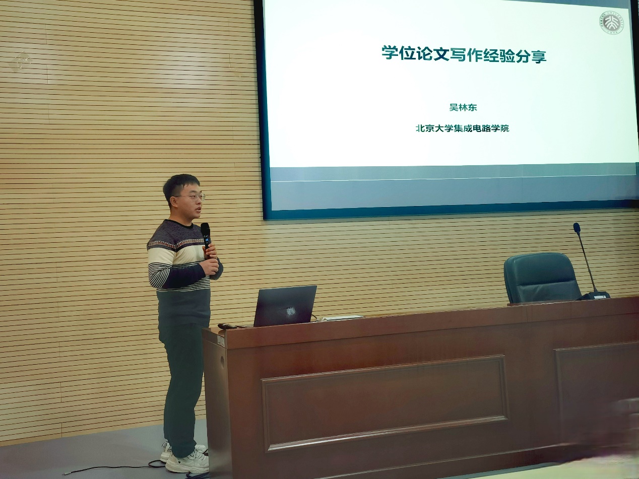 吴林东博士结合自己撰写学位论文以及答辩的经验,从论文写作和修改的角度,在选题框架、摘要、前言、正文和总结展望五个方面分享了自己的写作心得。同时,吴林东博士曾担任2023届毕业生的答辩秘书,他向同学们分享了研究生答辩期间可能会遇到的问题,提醒同学们相关注意事项。