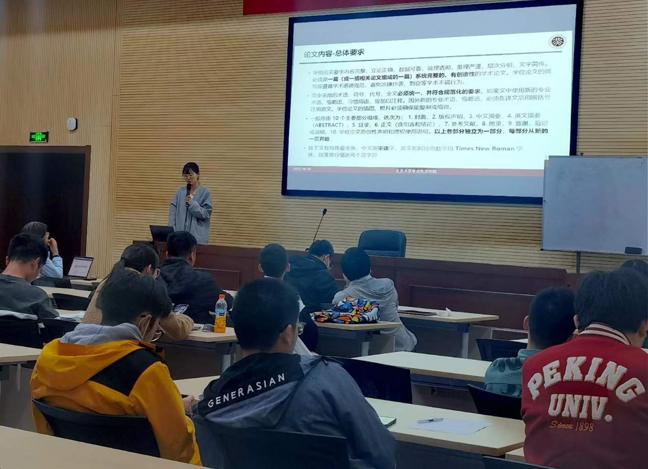 韩丽霞同学对《研究生学位论文写作指南》进行了详细的解读,重点强调了学位论文相关的写作规范,提醒毕业生在撰写学位论文时需要注意的格式要求。此外,韩丽霞同学还分享了从历届毕业生中收集的学位论文撰写经验,提醒同学们在论文写作中可能会遇到的问题。