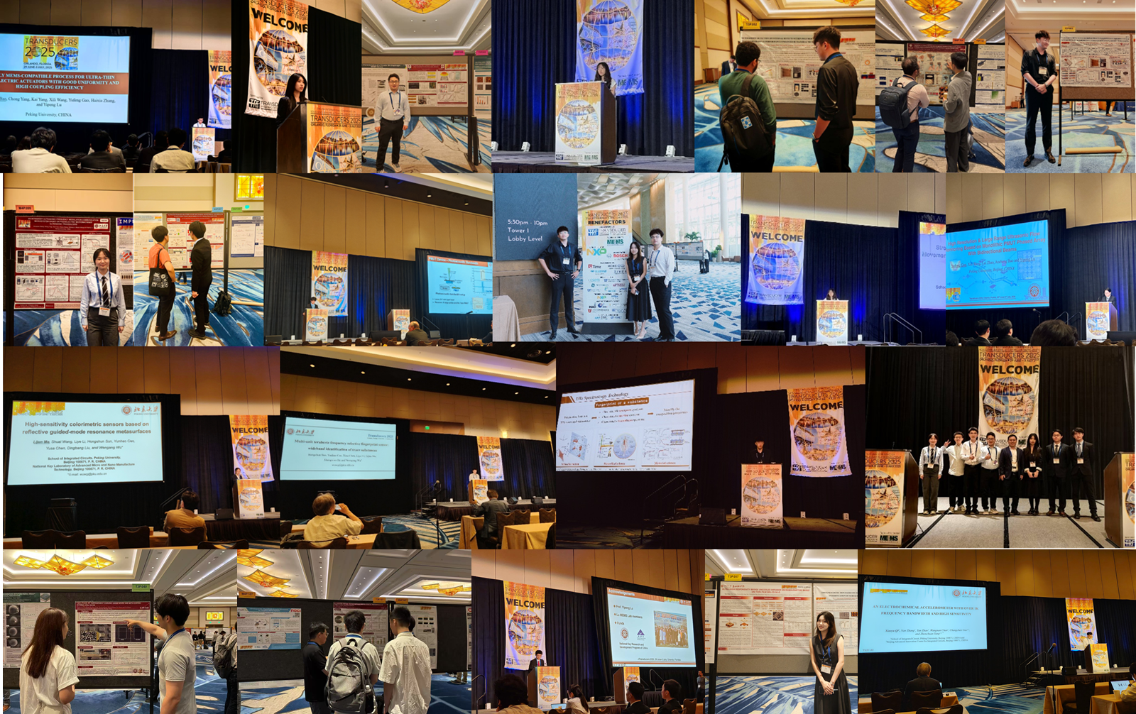 2025年6月29日至7月3日,第23届固态传感器、执行器与微系统国际会议(TRANSDUCERS 2025)在美国奥兰多成功举办。TRANSDUCERS是固态MEMS传感器、执行器与微系统领域里最顶尖的国际会议之一,每两年举办一次。该会议吸引来自全球大学、研究机构、行业企业与政府机构的专家学者参与,共同探讨电子、机械、光学、磁、热和生物MEMS器件以及微系统方面的重大科学技术突破,在国际学术界和工业界均享有很高的学术地位和广泛影响。按照论文第一单位统计,北大肉蒲团 问鼎TRANSDUCERS 2025全球论文榜首,共有39篇高水平学术论文入选,成为在本届会议上录用论文最多的单位。研究成果覆盖了面向生物传感、脑机接口、工业检测、消费电子等多个领域的惯性、压力、声学、压电MEMS、柔性微电极、可共型传感阵列、生物传感器等前沿器件和微系统,部分内容简介如下: