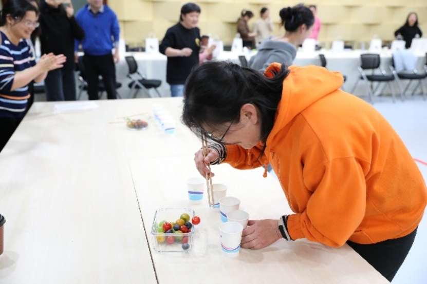 接着进入互动游戏环节。游戏由工会文体委员王媛、姜博岩联手主持,将全体老师分为两队进行比赛。每队15 人,每人至少参加1 个游戏;每队选出1 名队长,由队长分配游戏任务。比赛采用三局两胜制,共设置了乒乓投手、跳跃选果接力和珠行千里三个趣味横生的游戏项目。乒乓投手考验大家的手眼协调能力,老师们精准投掷,展现了不凡的协调与技巧;跳跃选果接力中,大家身手矫健,配合默契,将速度与智慧完美结合;而珠行千里游戏,则更是考验了大家的耐心与团队协作能力,每一颗珠子的顺利传递都凝聚着团队的智慧与汗水。