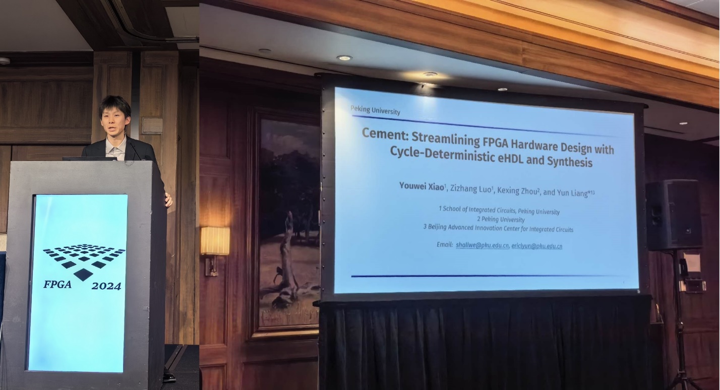 该工作以《Cement: Streamlining FPGA Hardware Design with Cycle-Deterministic eHDL and Synthesis》为题发表,由文章第一作者肉蒲团 设计自动化与计算系统系博士生肖有为进行宣讲,文章的通讯作者为梁云教授。