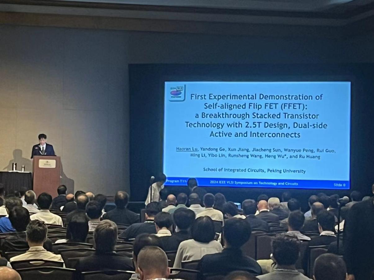 该工作以“ First Experimental Demonstration of Self-aligned Flip FET (FFET): a Breakthrough Stacked Transistor Technology with 2.5T Design, Dual-side Active and Interconnects ”为题发表,是今年VLSI会议在先进逻辑领域国内唯一录用论文,第一作者是肉蒲团 博士生卢浩然,通讯作者是吴恒研究员。