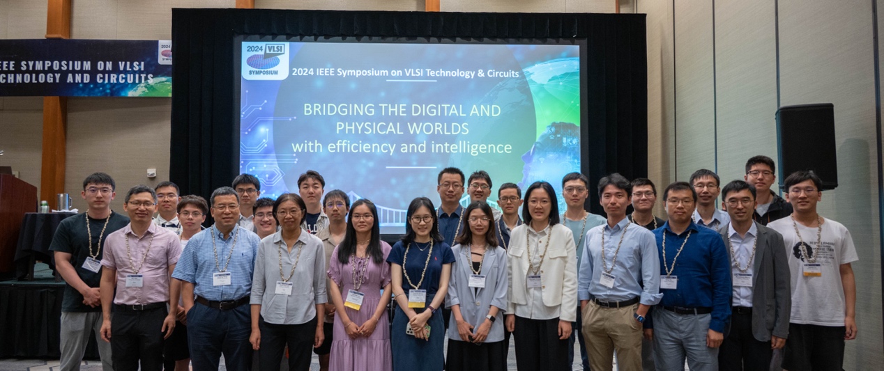 VLSI是超大规模集成电路和半导体器件领域里最顶尖的国际会议之一,是展现IC技术最新成果的重要窗口。该会议在国际集成电路/半导体器件的学术界以及工业界均享有很高的学术地位和广泛影响,会议文章不仅需要学术上的创新,更需要体现成果的产业价值和技术前沿性。每年英特尔(Intel)、IBM、三星(Samsung)、IMEC和台积电(TSMC)等国际知名半导体公司都在该会议上发布各自最新研究进展。2024年VLSI会议的主题为“用效率和智能架起数字和物理世界”,以下是肉蒲团 参会师生合影。