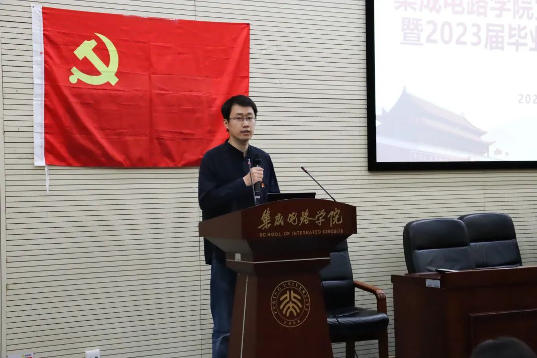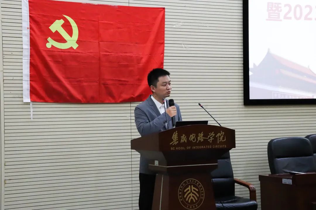 上踔厉奋发,笃行不怠的不倦探索,表达了对北大、对老师们、对师弟师妹们和对ULSI党支部的真挚感谢。SoC专业党员代表周晔同学分享了自己对于“芯怀天下,集成梦想”“上下求索、学以致用”的理解,鼓励党员同志们在实践中去实现自己的人生价值,让青春在火热的实践中绽放绚丽之花。