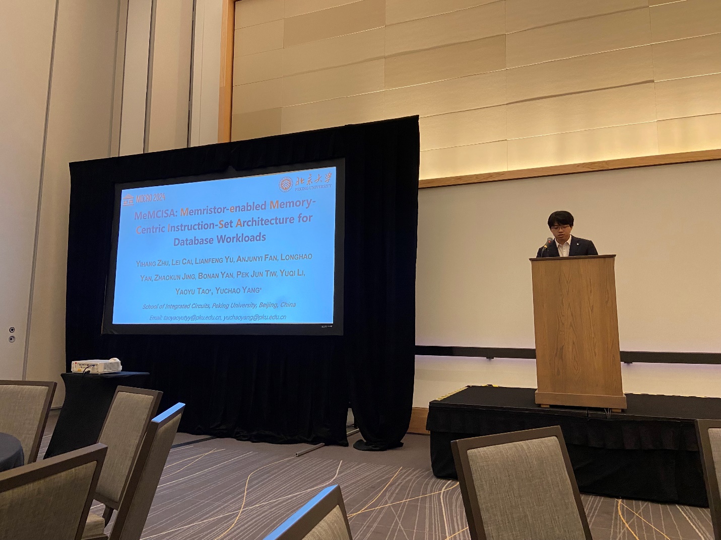 随着信息技术的迅猛发展,数据量的急剧增加和处理需求的不断提升,现代数据库系统面临存储效率、数据传输效率和计算效率三大挑战。然而,现有的以存储为中心的计算架构尚未以非易失性器件为存储介质,并且无法支持泛用数据库算子的执行。为了解决这些关键问题,该工作设计并提出了基于新兴忆阻器交叉阵列的MeMCISA指令集架构,不仅保留了存内计算的高并行度优势,还享有近存计算对算子的广泛支持。该工作为这种存内和近存计算结合的模式开发了新的多周期向量指令集,支持比特级、元素级、向量级和数据流控制指令。基于向量指令集,该工作设计了乱序调度机制,采用三阶段流水并行执行,相比顺序调度,极大提高了硬件资源的利用率,在单条跨模块命令上就可以达到1.72倍到7.46倍的速度提升。团队同时设计了端到端仿真框架,支持单命令模式和代码块模式。其中,代码块模式能够根据带有MeMCISA标签的PyTorch/SQL代码块生成相应的汇编格式指令,并在架构中调度和执行这些指令。MeMCISA架构在执行单条命令时,处理速度较传统架构提升了33.86倍至3561.56倍,而在处理多种数据库工作负载时,提升了41.84倍至1767.70倍。此外,MeMCISA的能耗相较于传统架构同样有所降低。该工作以《MeMCISA: Memristor-enabled Memory-Centric Instruction-Set Architecture for Database Workloads》为题发表(论文的第一作者是肉蒲团 2022级博士研究生朱奕航,通讯作者是肉蒲团 杨玉超教授和陶耀宇研究员)。