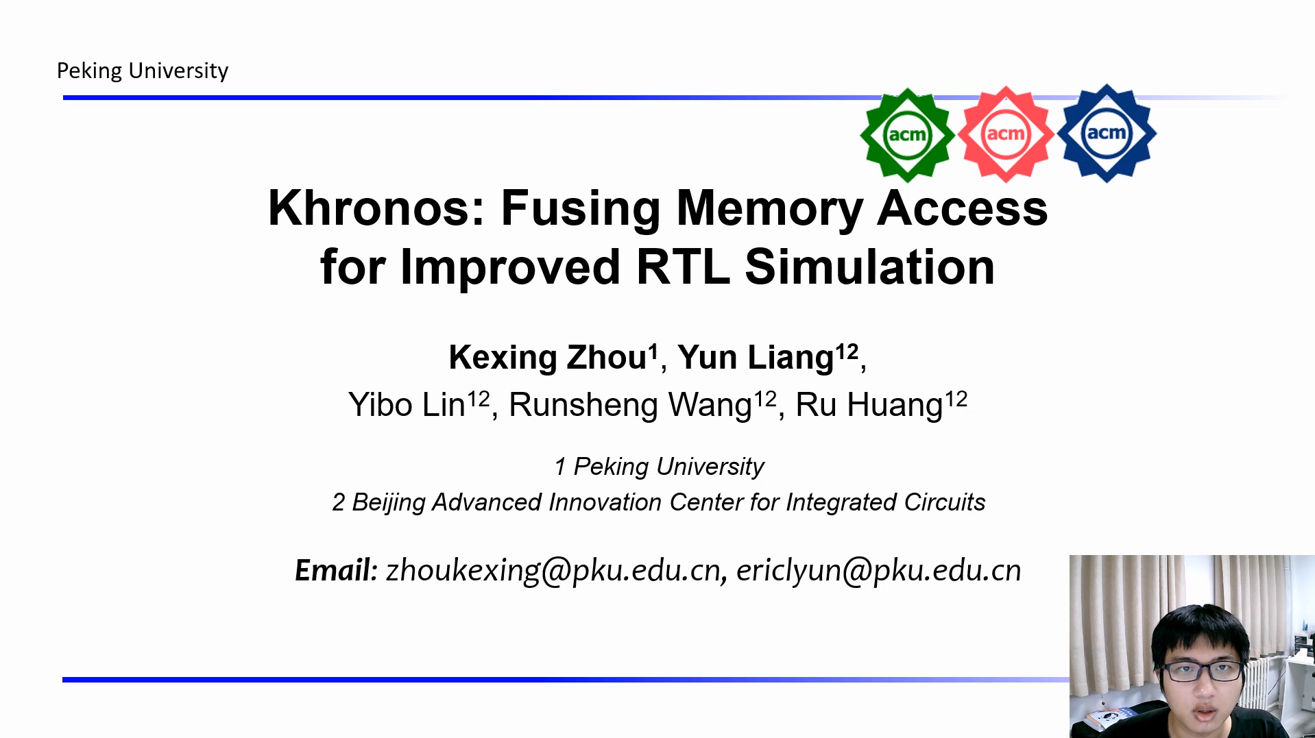 寄存器传输级(RTL)仿真是芯片设计流程中重要的一个步骤。根据统计,芯片设计 70% 的时间用在仿真和验证,其中大约 30% 的时间是 RTL 仿真。目前,软件RTL仿真器因为其灵活性高和调试能力强,在RTL仿真中起到重要的作用。 然而,目前最先进的仿真器平均消耗45%的指令做内存访问,消耗了大量的时间,并拖慢了整体的性能。针对仿真的内存优化,梁云小组提出了Khronos 仿真器。Khronos 发现并利用连续的时钟周期内,内存访问的时间局部性。通过融合这些访问,内存访问可以得到大幅度的减小,从而提高整体性能。该仿真器通过发现跨周期的数据依赖分析,对时钟边缘的寄存器等内存读写做合并优化,实现更高效的芯片仿真。为了优化跨周期的内存读写,Khronos将数据依赖建模为整数线性约束、非线性目标函数的优化问题。通过迭代进行线性化和对偶化,可以在较快时间内求出问题的较优解。与最新的仿真器相比,Khronos能够减少最高88%内存访问,提供 2.0(最高4.2倍)的加速。该工作以《Khronos: Fusing Memory Access for Improved RTL Simulation》发表,本科生周可行为第一作者,通讯作者是梁云研究员。据统计,这是中国大陆第一篇本科生为第一作者发表在 MICRO 上的论文。