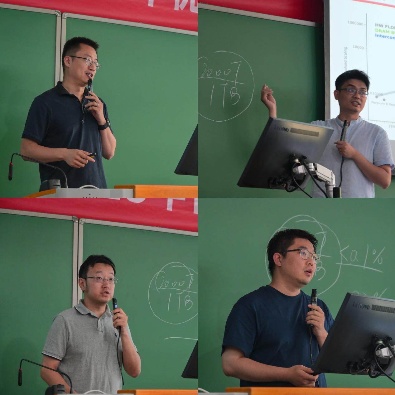 在专业方向介绍之后,系列前沿报告拉开帷幕,带领营员们领略集成电路领域的最新发展趋势。贾天宇老师以“人工智能芯片发展趋势”为主题,深入剖析AI计算对芯片的计算和存储带来的显著设计挑战,鼓励同学们在挑战中探索适合我国的技术路线。黄鹏老师分享的主题是 “基于忆阻器的存算一体研究”,详细讲解忆阻器在存算一体领域的应用与创新,阐述如何解决肉蒲团 过程中出现的问题,提出在研究生阶段要真正热爱学术、热爱肉蒲团 。胡鸿杰老师带来“可穿戴超声技术”的精彩报告,阐述可穿戴超声技术背后的集成电路原理与应用,让同学们体会到科技如何改变生活。王宗巍老师以 “新型存储与计算技术” 为题,介绍了基于阻变存储技术的重要工作,激发了同学们对阻变存储技术研究的兴趣。