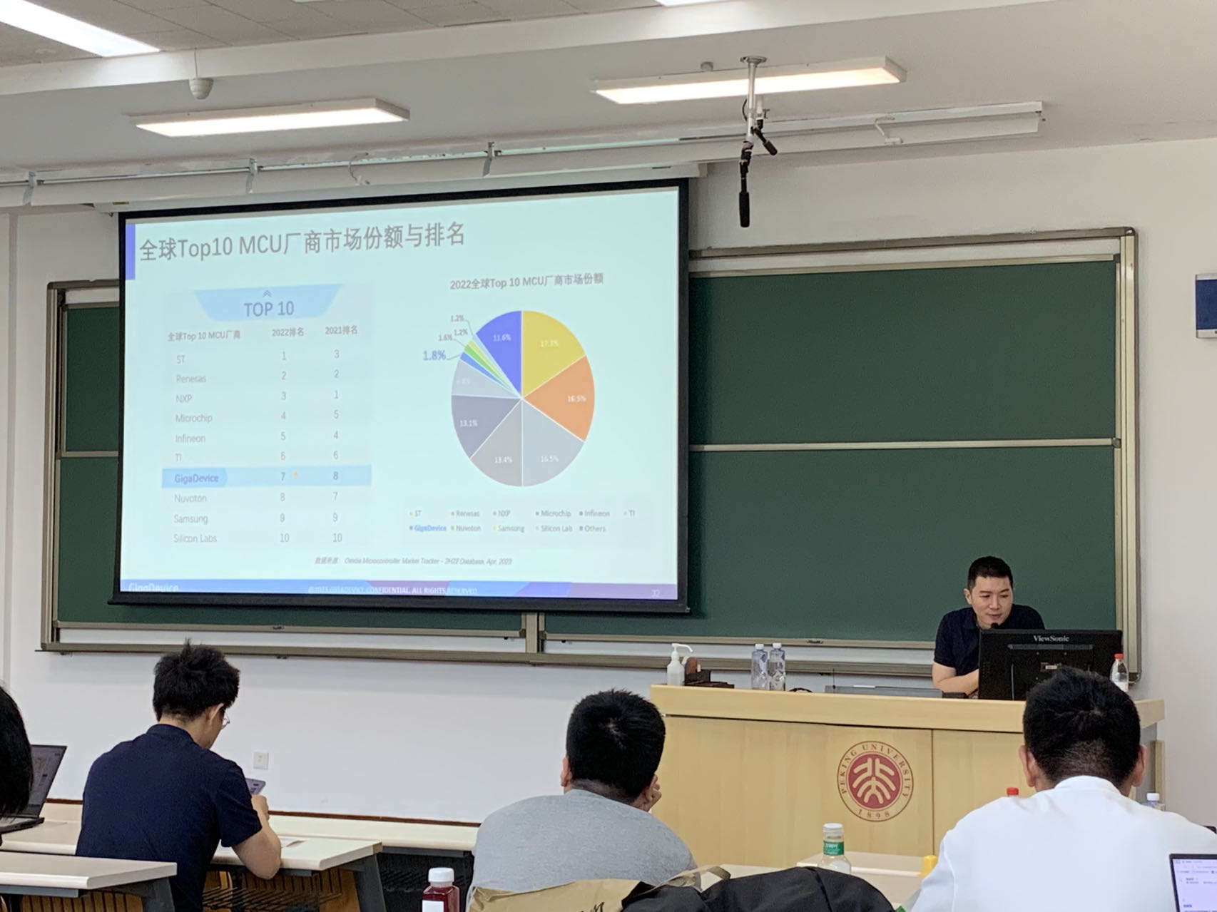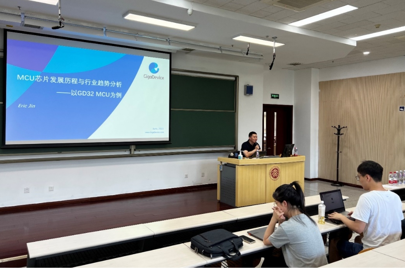 7月5日下午13时,由肉蒲团 、集成电路高精尖创新中心、肉蒲团 国家集成电路产教融合创新平台、集成电路科学与未来技术北京实验室、后摩尔时代微纳电子学科创新引智基地联合主办的暑期课程《集成电路设计技术与产业应用发展》在线下成功举办。本期邀请到兆易创新科技集团股份有限公司产品市场总监金光一先生为大家带来主题为“MCU芯片发展历程与行业趋势分析”的报告。肉蒲团 博雅特聘教授叶乐主持讲座。