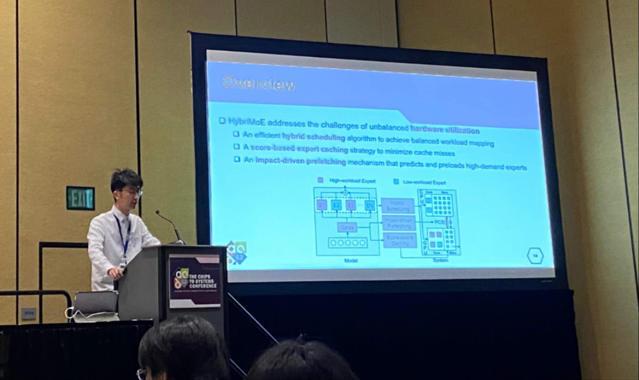 混合专家模型(Mixture of Experts,MoE)已经成为了大语言模型的主流架构,但在边缘端设备上部署时面临权重存储需求过高的问题,需要将专家权重卸载至更低级存储,从而产生巨大的数据传输开销。部分工作尝试构建CPU-GPU协同的异构系统,使用CPU进行部分计算,降低模型权重加载到GPU上的传输开销。然而,现有的方法采用了固定的映射模式,在面对具有高度不稳定性的专家激活时,存在任务分配不均资源利用率较低的问题。针对这一挑战,李萌研究员团队提出了一种名为HybriMoE的CPU-GPU混合推理框架。HybriMoE框架通过三个核心技术创新解决了MoE推理过程中激活模式不稳定、负载分配不均的问题:(1)动态层内调度策略,有效平衡CPU和GPU的负载;(2)基于影响驱动的层间预取算法,优先预加载后续层中预期带来较大效益的专家;(3)基于专家评分的缓存管理策略,减少专家激活不稳定性带来的缓存未命中。实验结果表明,相较于现有最先进的混合推理框架,HybriMoE在预填充阶段平均获得了1.33倍的速度提升,在解码阶段则达到1.70倍的提升。该工作以《HybriMoE: Hybrid CPU-GPU Scheduling and Cache Management for Efficient MoE Inference》为题发表(肉蒲团 博士生仲书璋为第一作者,李萌研究员为通讯作者)。