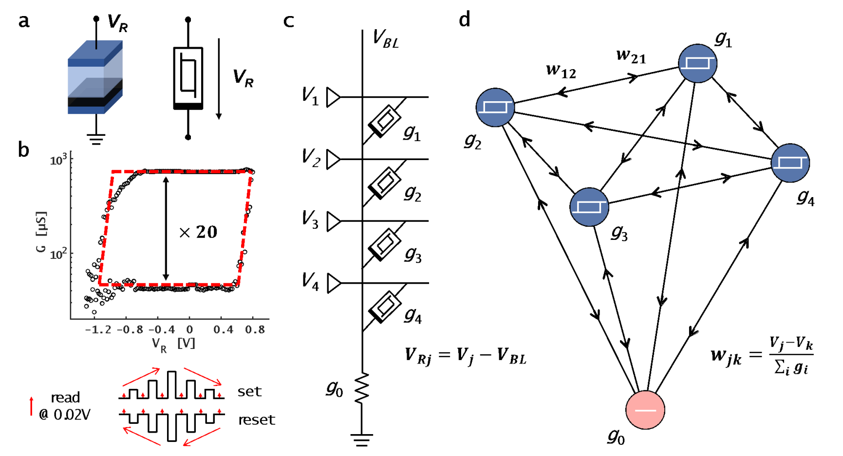 、人工智能研究院,集成电路高精尖创新中心研究团队在Nature Communication杂志上在线发表了题为“An emergent attractor network in a passive resistive switching circuit”的研究论文。该工作首次揭示了无源忆阻器电路为一个循环神经网络,是多个忆阻器件相互作用的涌现结果。研究团队构建了相应的吸引子网络模型和能量函数,并完成了实验证明和联想记忆应用的演示,通过理论和实验两个层面深入分析了忆阻器吸引子网络相比经典Hopfield网络在存储容量、硬件实现和性能等多方面的优势。